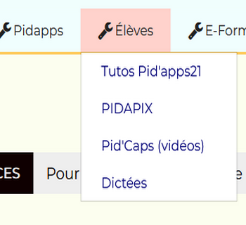 Pid'apps21... bien sur, des capsules vidéos (Pid'Caps) référencées par item, PIDAPIX pour les tables, les dictées audios des différents items.